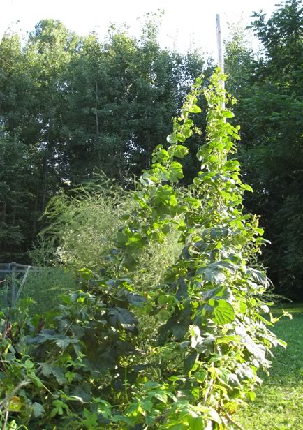 This is a mature hop plant (8-10 years) that has almost reached the top of the 16 foot hops pole.