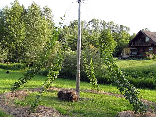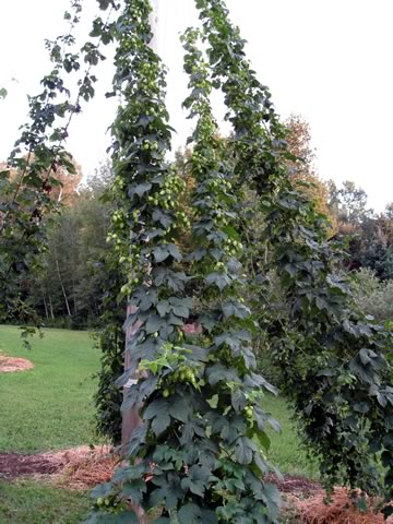 The Mount Hood hops have reached the top and the hop cones are starting to set.
