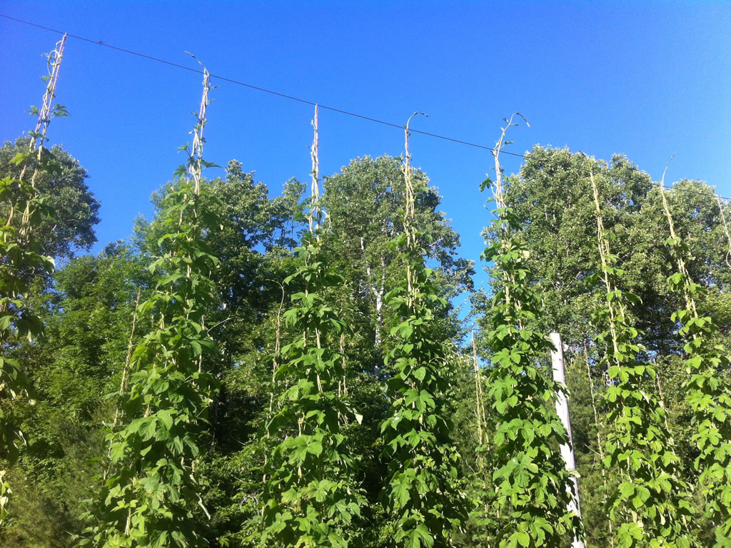 This spring got the plants off to a good start. Because the plants were stressed last year we decided not to crown the new shoots. This appears to have been the right decision as the plants are almost at the top by the middle of June.